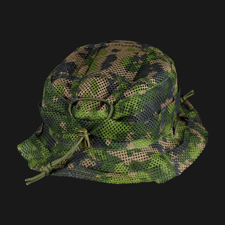This boonie is made entirely from mesh fabric to maximize airflow. The small holes also let you add bits of vegetation or secure items with string or zip ties, making it a perfect base for your ghillie suit.