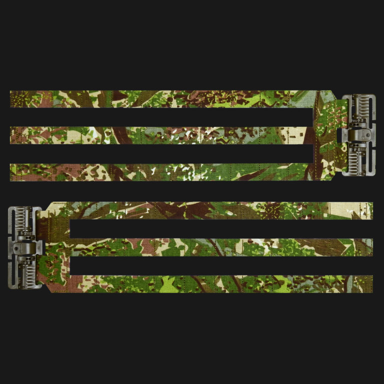 The buckles have cutouts, allowing you to upgrade your existing carrier without sewing or alterations. Your plate carrier needs 1.5″ or 40 mm webbing spaced 20 mm apart, and your rear plate bag also needs to be compatible with skeletonized plate carriers (shock cord adjustment system).